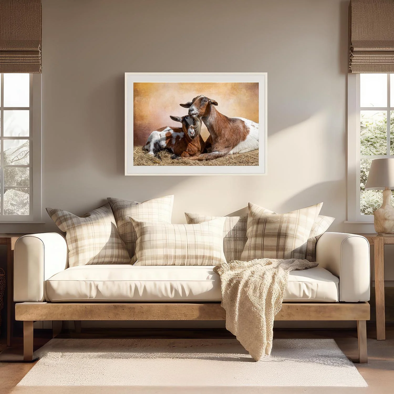These two goats, mother and daughter, were completely at ease with one another, bodies relaxed and intertwined in a way that spoke of trust. Goats are emotionally expressive animals and form strong social bonds. They lean gently into each other, eyes soft, fully settled.