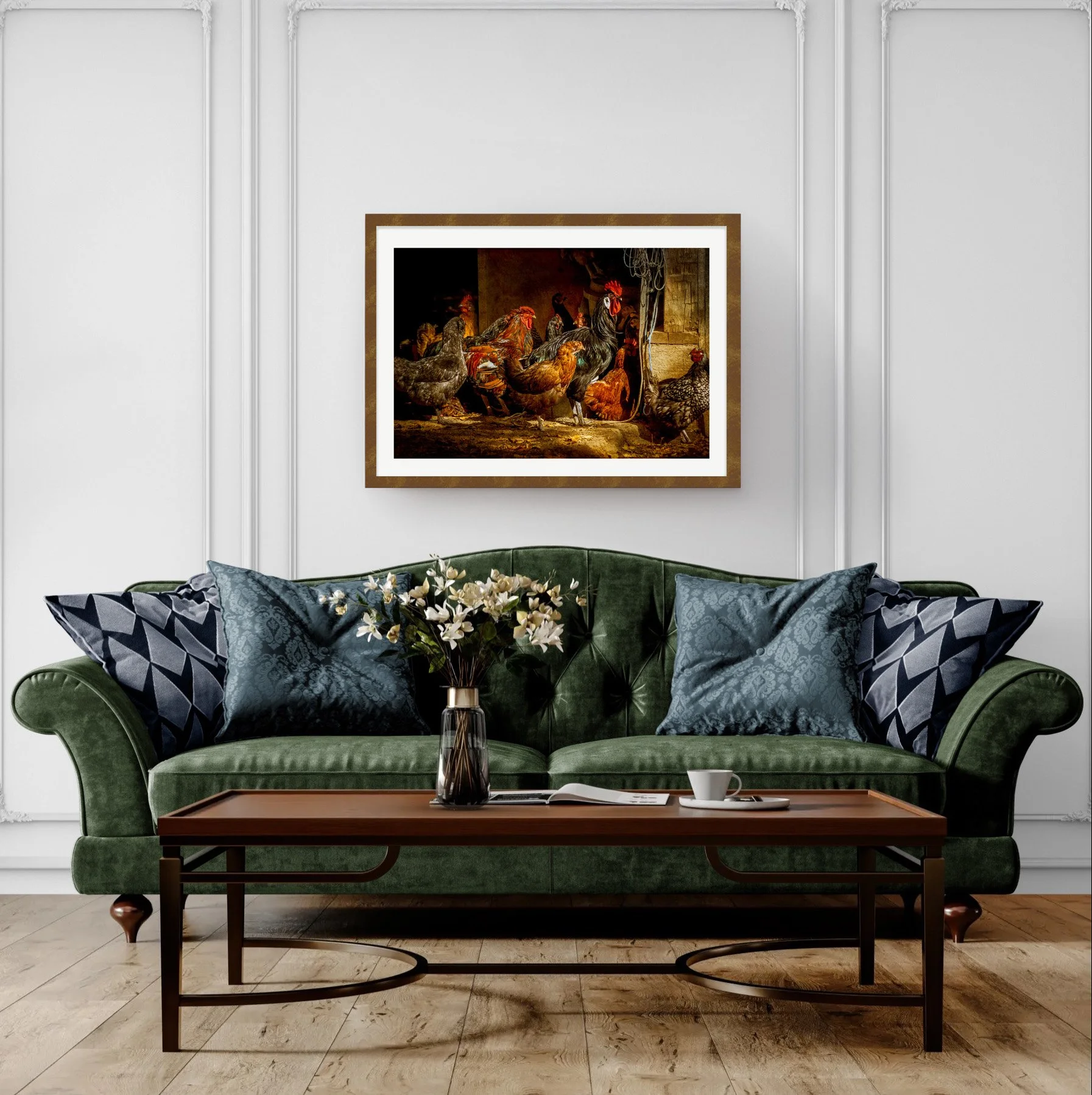 This group of chickens feels less like a collection of individuals and more like a living, breathing community. Chickens exist within complex social structures and are constantly reading one another and their environment. Each bird holds a distinct posture and awareness, yet together they form a shared rhythm