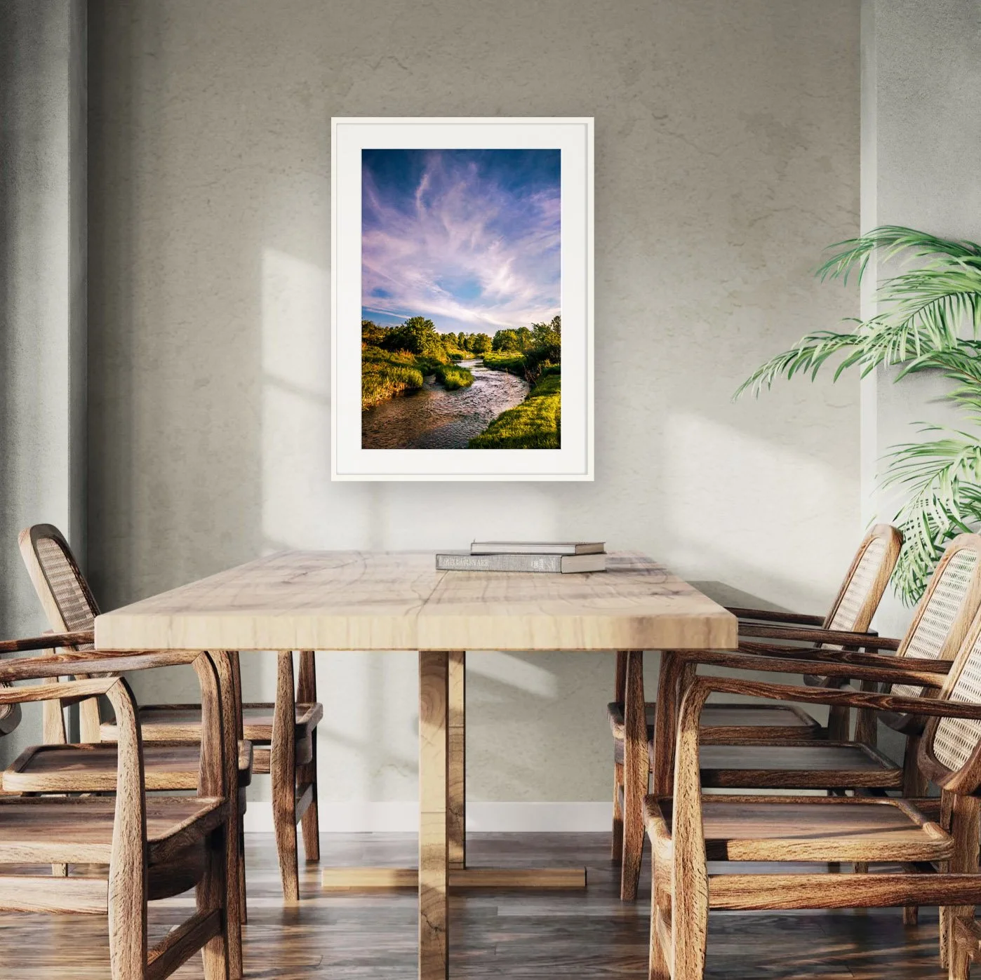 I remember the sound of the water first, then the way the light skimmed across its surface and lit up the sky. The moment felt calm but alive, held together by motion rather than stillness. Photographing it felt like stepping into the flow rather than interrupting it. As a print, this image brings that sense of movement into a space. It offers breathing room, a quiet rhythm that continues long after the moment has passed.